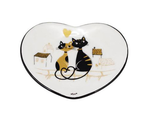 Piccolo piattino in ceramica a forma di cuore con due simpatici gattini.