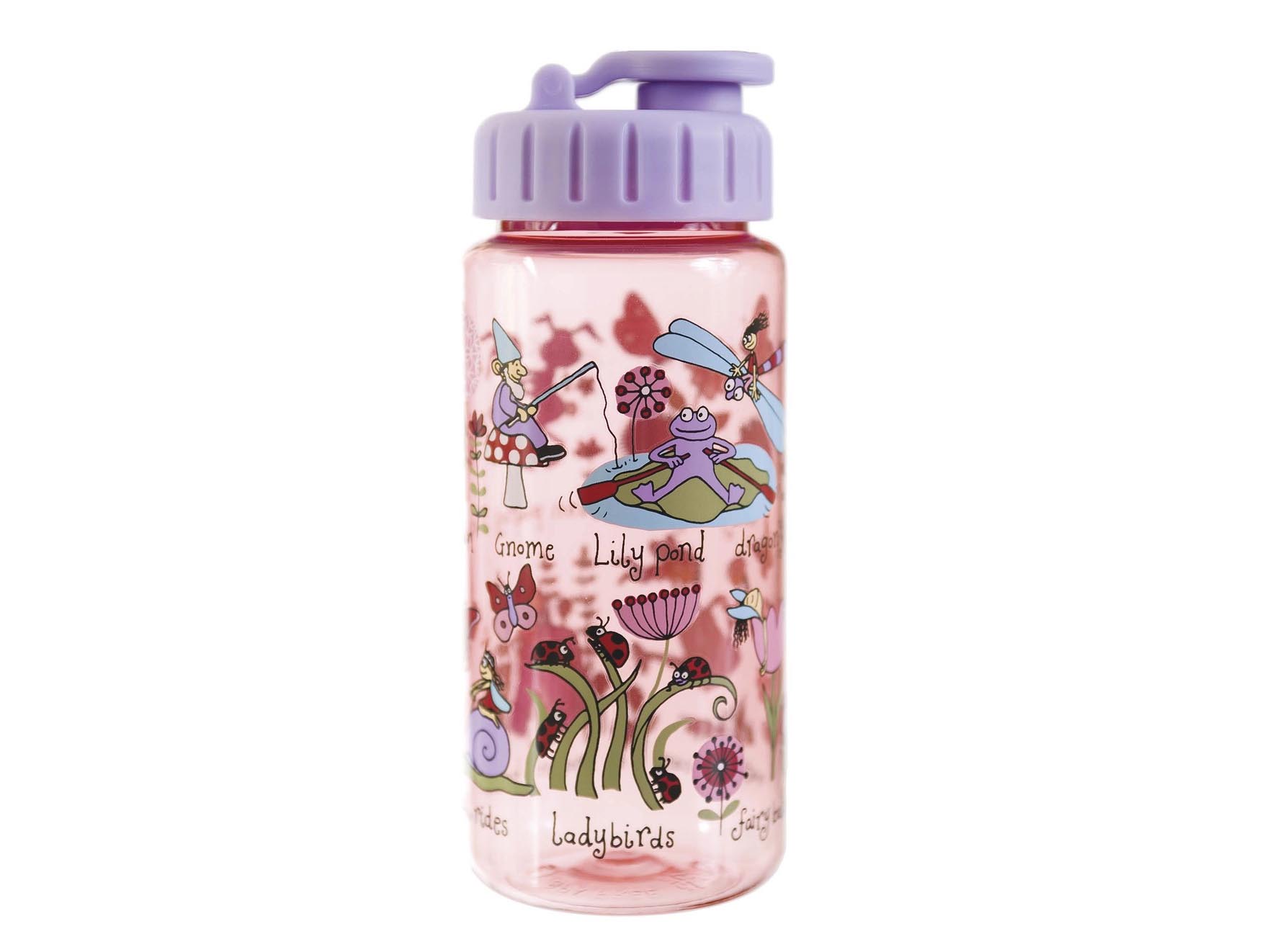 Simpatica borraccia della linea Tyrrell Katz decorata a tema giardino… pratica, sicura e resistente, realizzata in Ecozen, PP (polipropilene), tritan BPA Free.