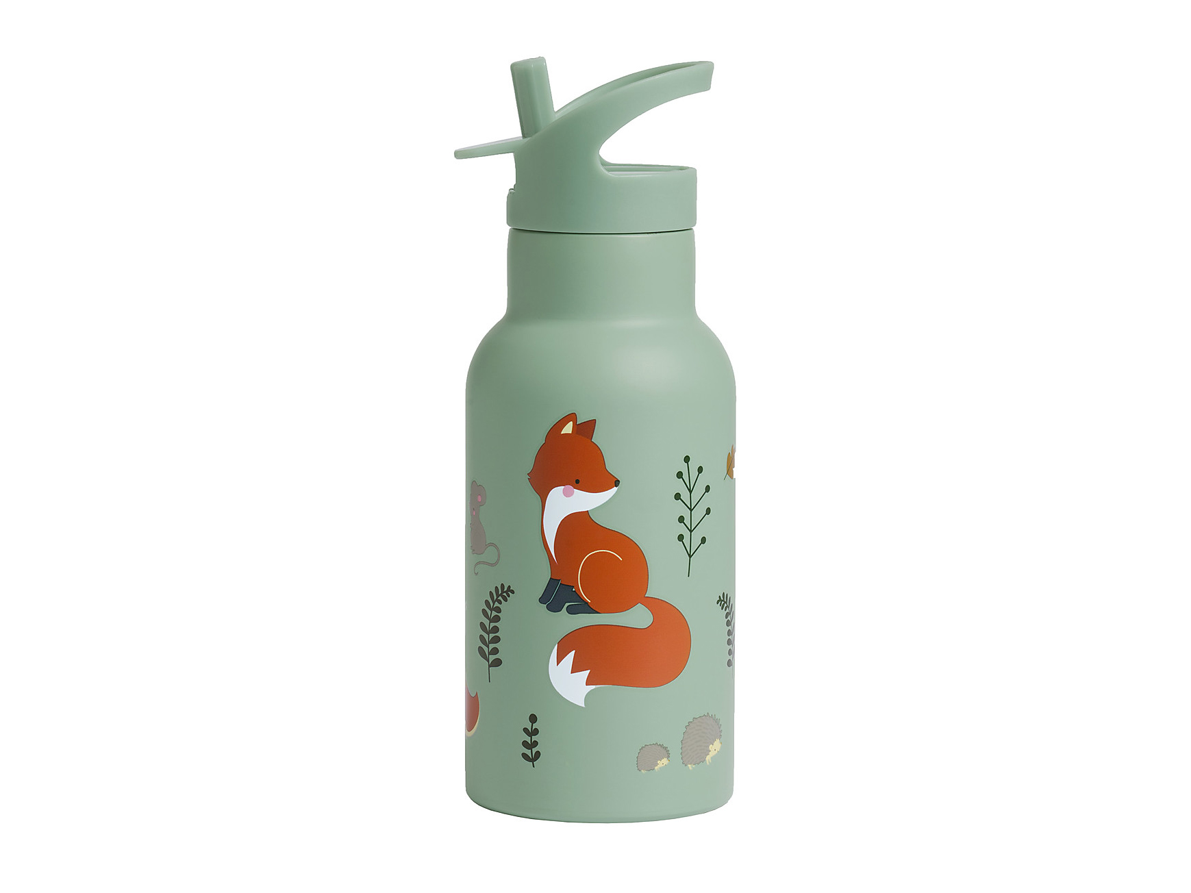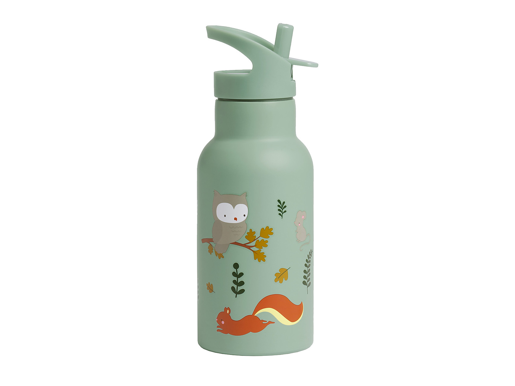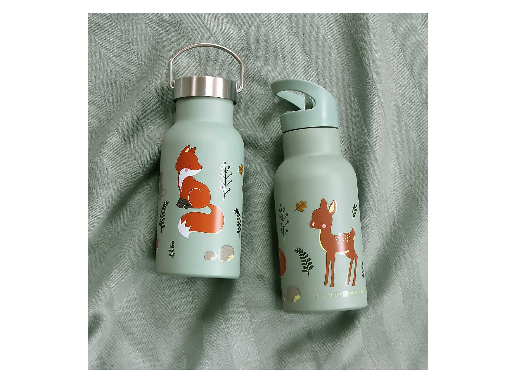 Simpatica borraccia della linea A Little Lovely Company decorata con gli aniamali della foresta.… pratica, sicura e resistente, realizzata in acciaio inossidabile e tappo con cannuccia BPA, piombo e ftalato free .