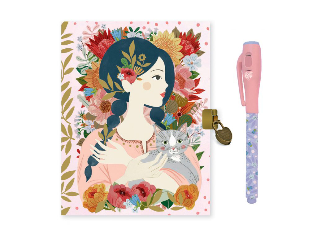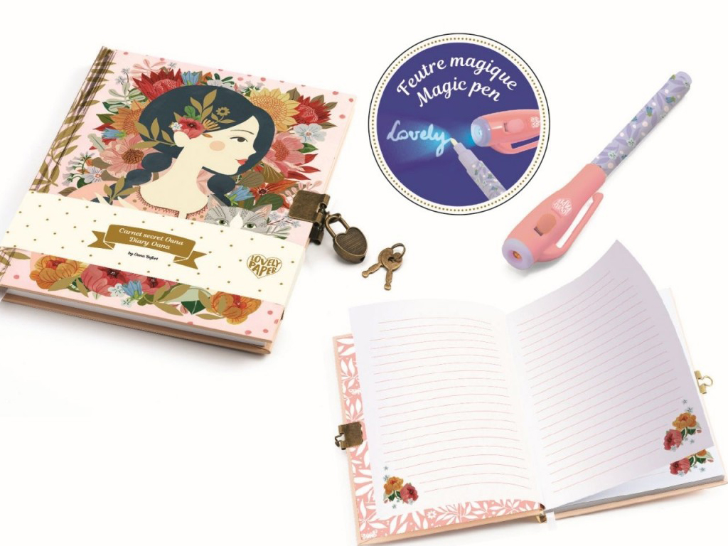 Bellissimo diario segreto Oana con penna magica, perfetto per mantenere i tuoi più grandi segreti scritti ha una penna a inchiostro invisibile con una lampada UV nel cappuccio per rivelare i tuoi disegni e i tuoi segreti. Il diario contiene 88 pagine a righe, un lucchetto e 2 chiavi.