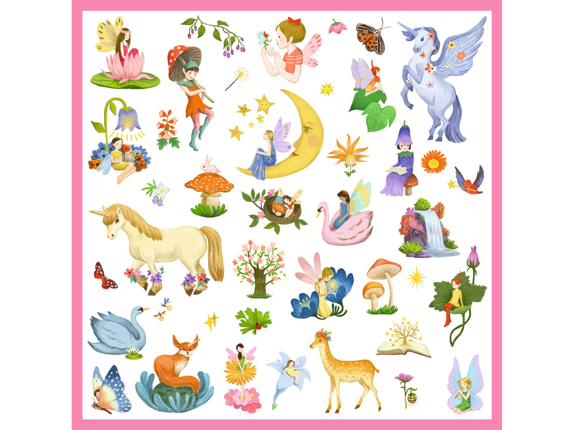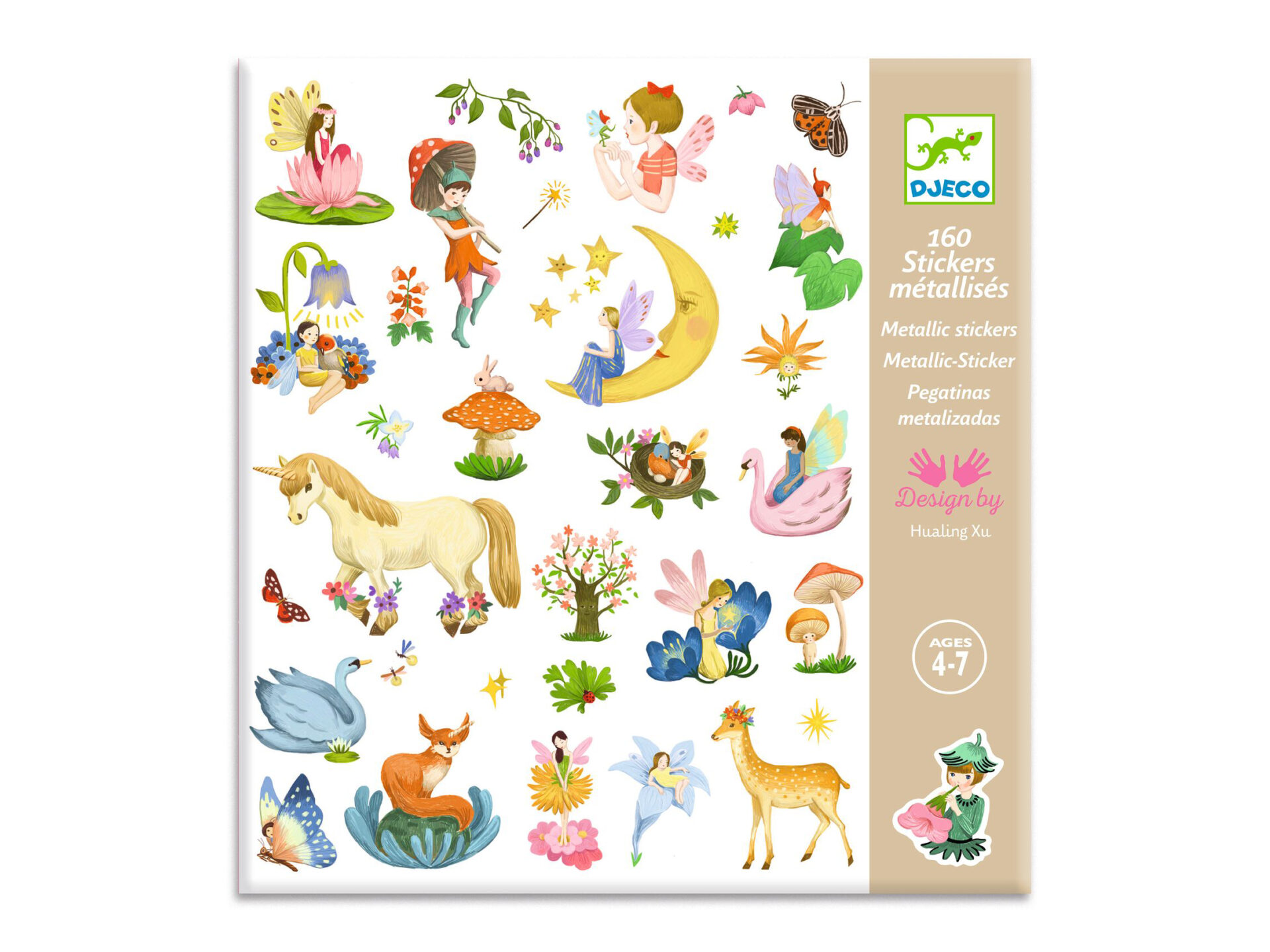Un bellissimo set con 160 adesivi metallici a tema Fantasy  con Elfi, fate, unicorni e spiriti della foresta ecc…….