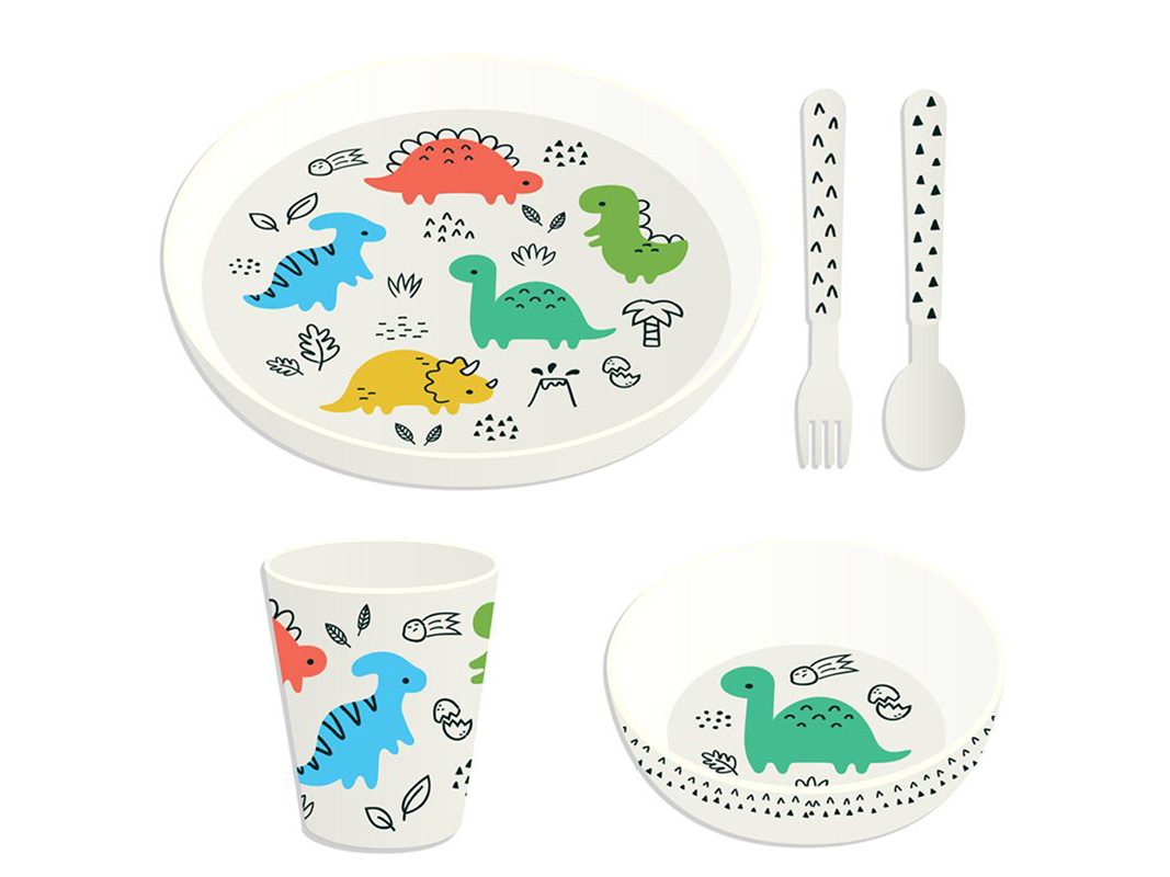 Il set include 5 pezzi e accompagna per molti anni i bimbi, avendo delle dimensioni utilizzabili anche quando il bimbo cresce. Gli articoli di RPET sono versatili, robusti, resistenti e colorati e sono perfetti per essere usati in ogni momento della giornata, dalla colazione alla cena!